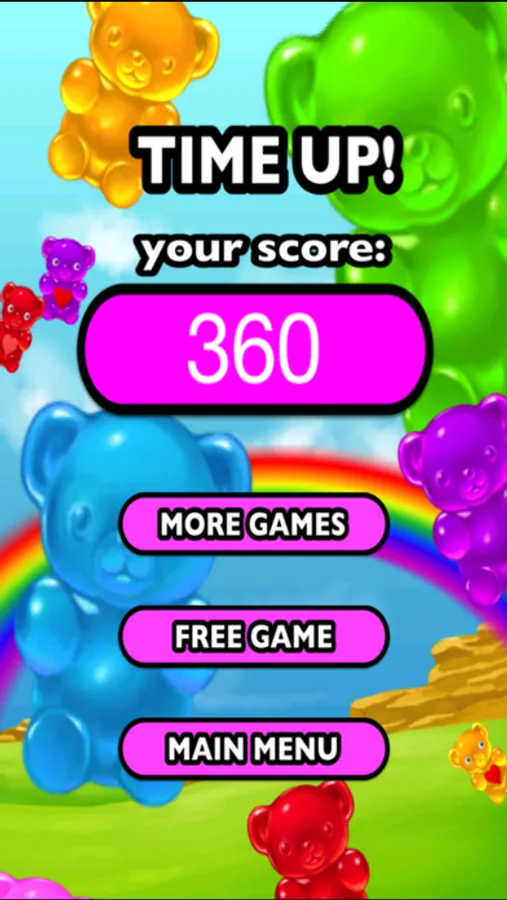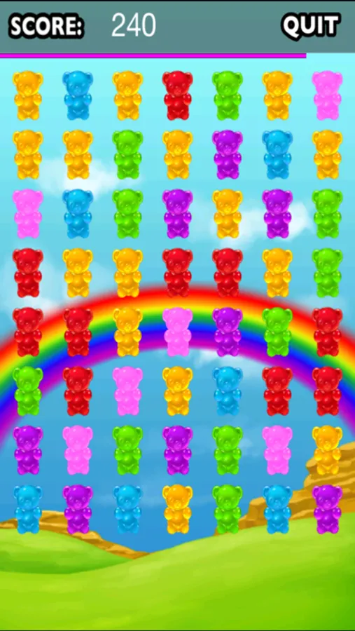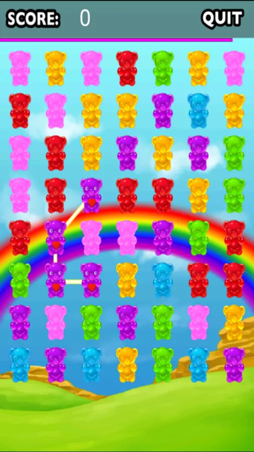 Immerse yourself in the colorful rainbow country and connect as many gummy bears as possible.