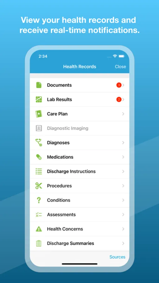 Connect to participating healthcare facilities and gain timely insight to your personal health records, including access to lab results, medications, immunizations, and allergy information, and receive real-time notifications when new health data becomes available.