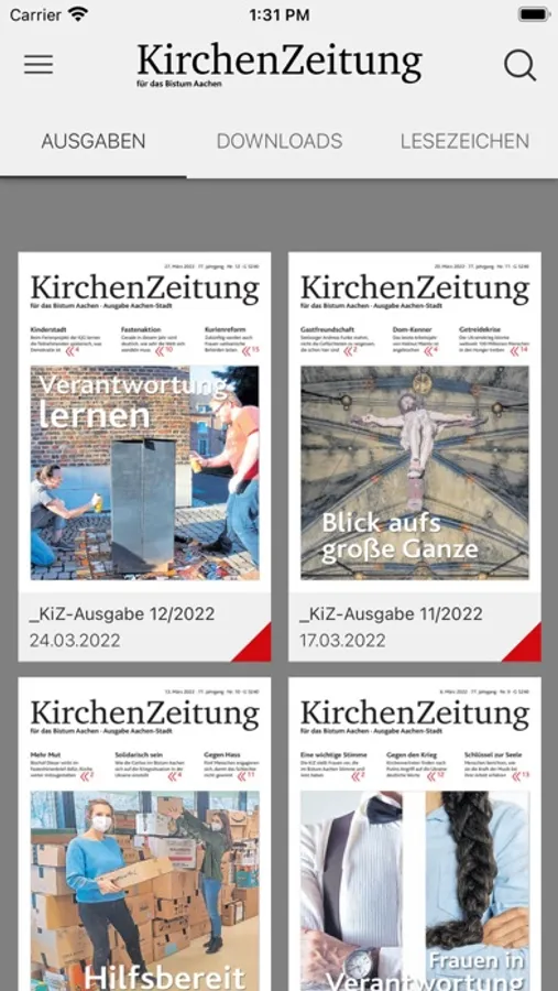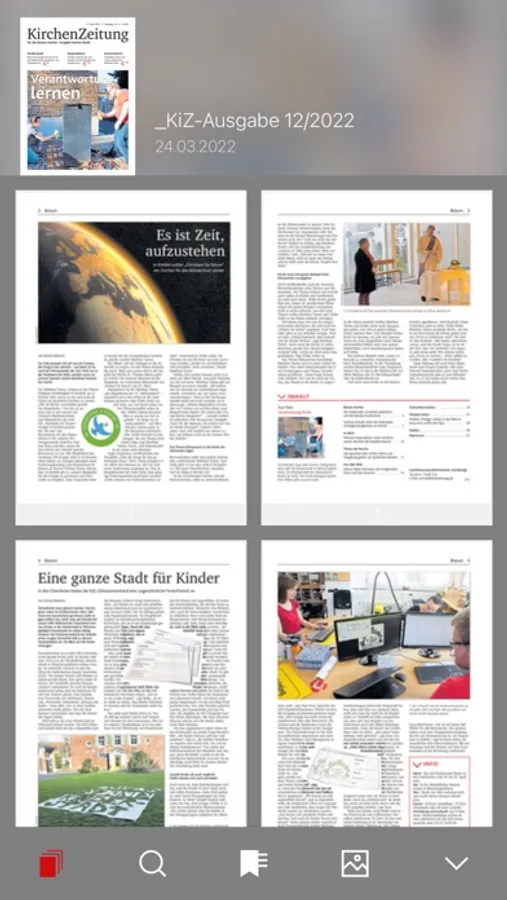 Das E-Paper der KirchenZeitung für das Bistum Aachen ist eine Gesamtausgabe, das heißt, alle neun Regionalausgaben finden sich lesefreundlich und übersichtlich in einem Dokument wieder.