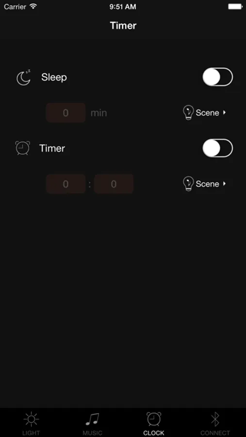 4. Timer settings allow you set a lights-on/off time, an alarm and music playtime