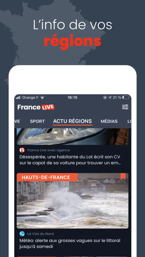 Avec l’application France Live, accédez au panorama complet de l’actu en temps réel.