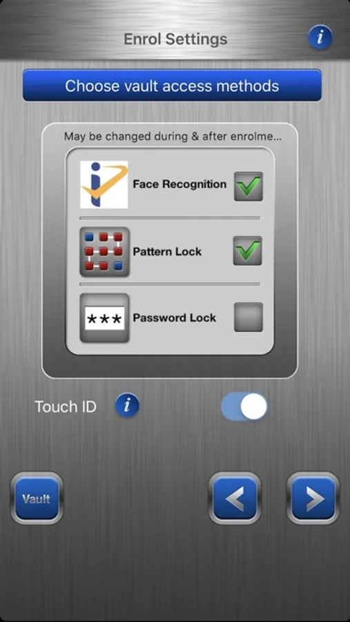 • Multiple access methods – Biometric Facial Recognition, Touch ID, Pattern and Password protection for personalized and customizable locking methods