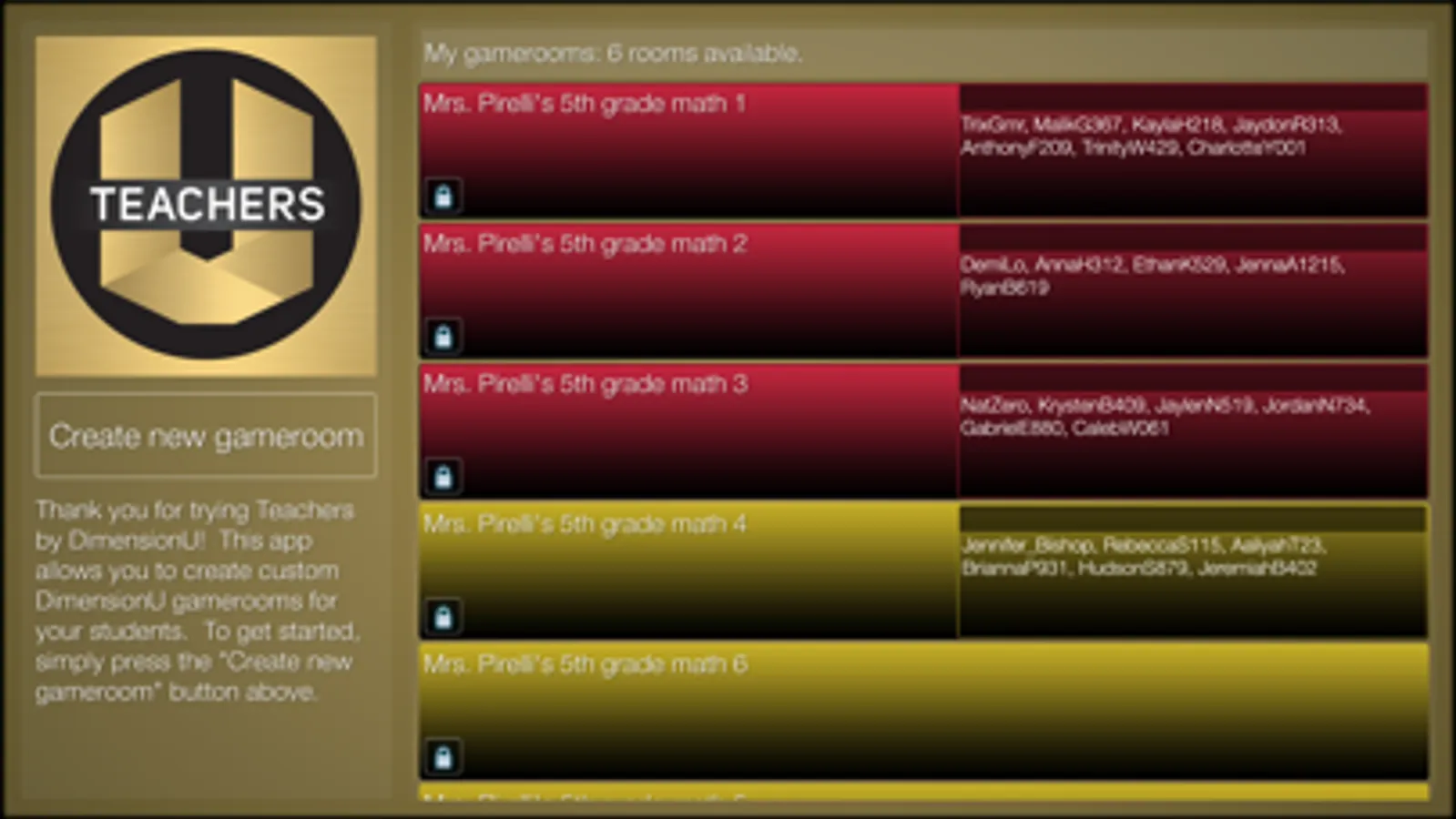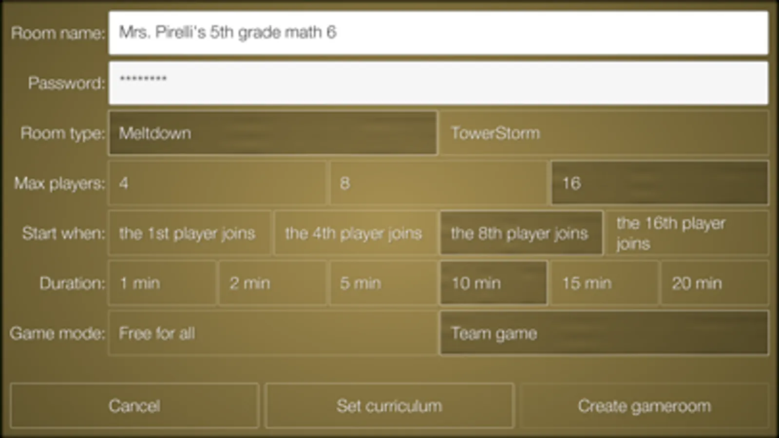 With this app, teachers can create password-protected game rooms that specify: