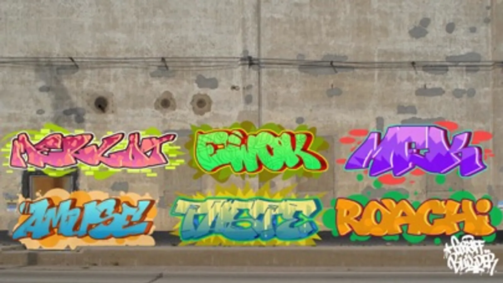 The 1.0 artists who have graffiti art fonts in Graff Builder are:Amuse 126 DE