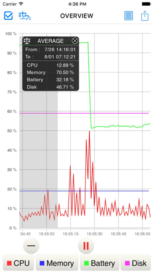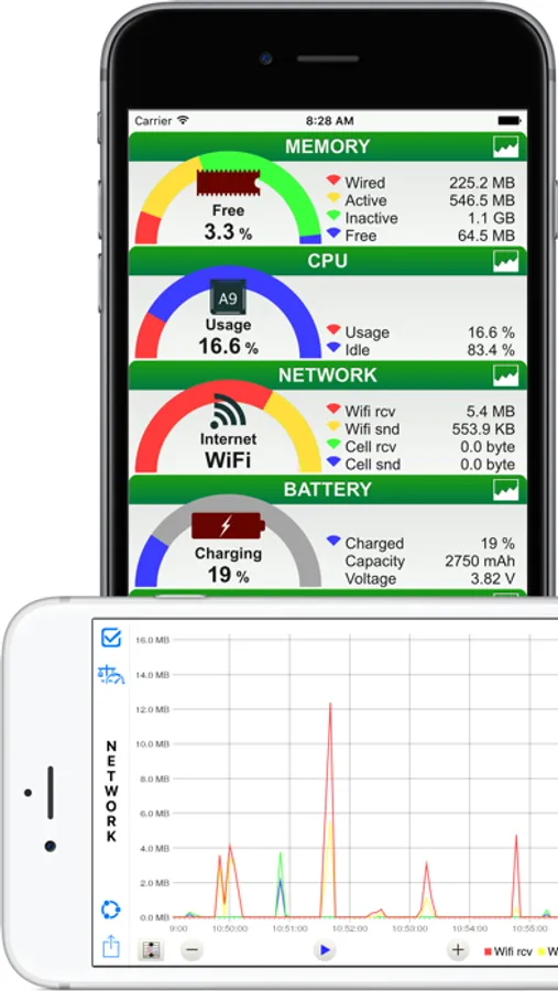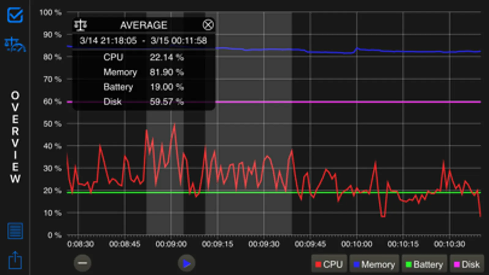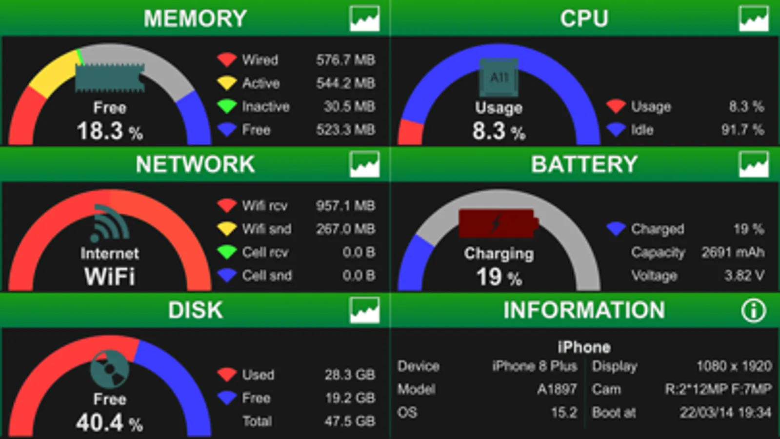 GENERAL : Rial time monitoring of memory, CPU, battery, disk usage and network connect
