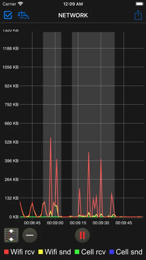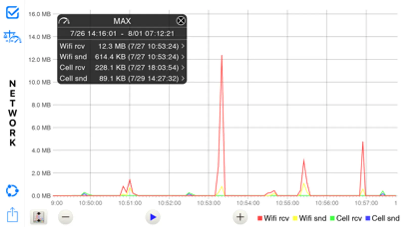 - Line chart of wi-fi received and sent, cellular received and sent data