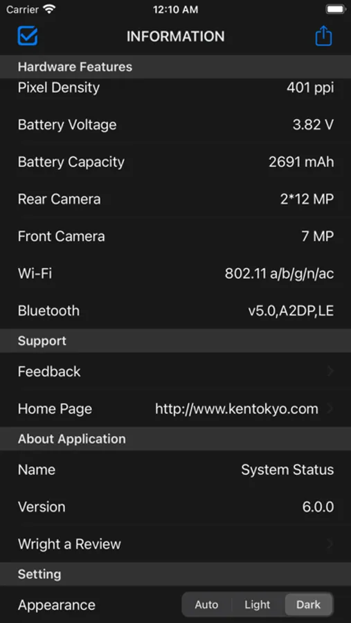 Also supports dark mode, and you can change the appearance of the app with Setting: Appearance in INFORMATION.