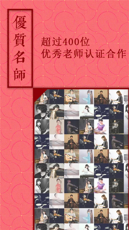 超过400位合作音乐老师。其中包含有新加坡国际钢琴比赛冠军张贺,第二节“欧米勒”全国钢琴比赛冠军刘昱飞,