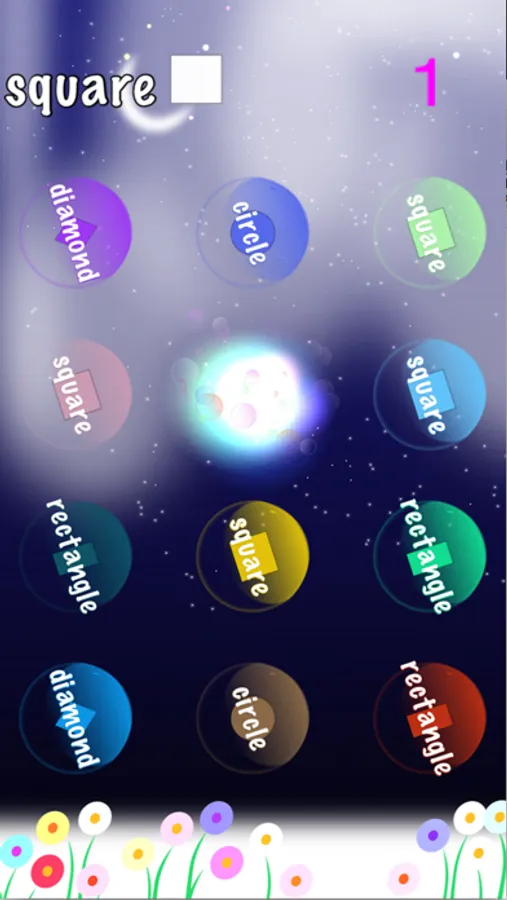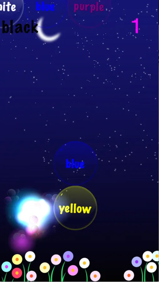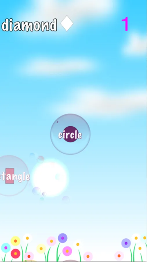 There are 4 modes, with bubbles going up, bubbles rotating to reveal the item and hide it, bubbles going across, and bubbles that spin the items around like a spinning plate. After you complete 2 rounds of 5 bubbles, the game switches to the next mode. After you complete all 4 modes then the first mode starts again, but with snow falling. After 4 modes of 2 rounds each, the game switches to night mode, which has especially pretty effects when the bubbles pop. Then we add snow to night mode, with a fog effect. All the items to match are pronounced by a preschool American girl speaker. Both the bubble and word are the matching color for color mode, and the word for the color is also on the bubble. For shapes we show both the shape and the word for the shape.