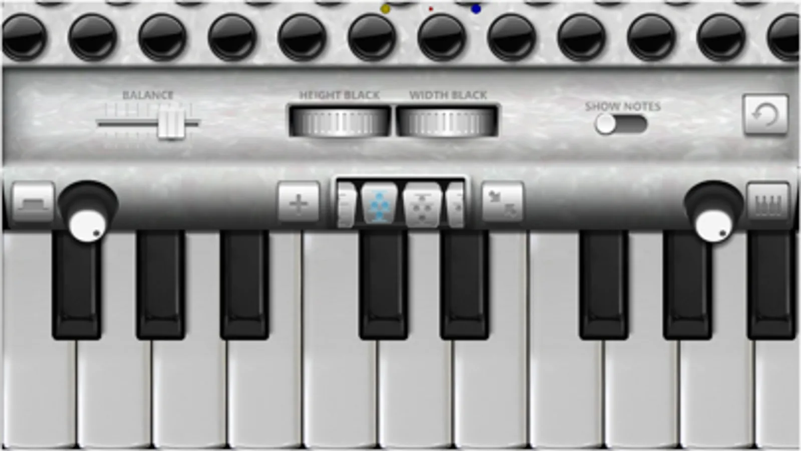 * Easy to use controls to adjust the sound volumes, show tips about notes and to set keyboard and basses scrolling.