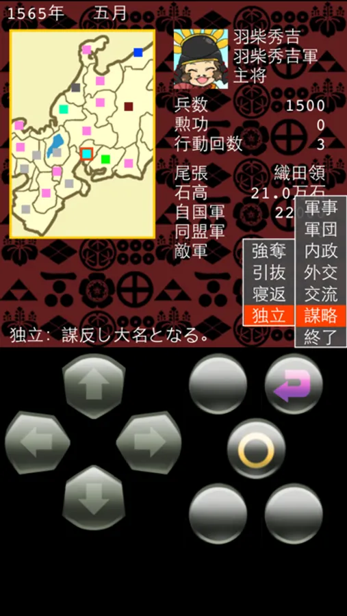 ボーシム研の道具屋シリーズスタッフが贈る、東北から九州まで、全国61ヶ国の統一を目指す、簡単操作の本格戦国シミュレーションゲームです。