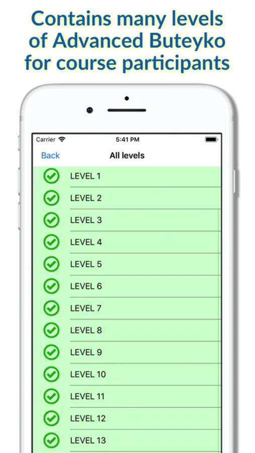 The first level of the app can be done by anyone. Level 2 can be done after registering for a free account. The highest levels are only suitable for participants to the Advanced Buteyko Breathing course.