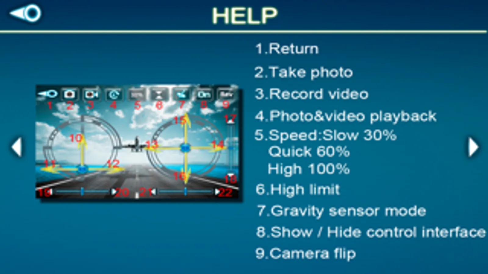 Use the application to connect the 720P WiFi camera device, you will be able to receive the camera view and take pictures ,Record videos,control drone.
