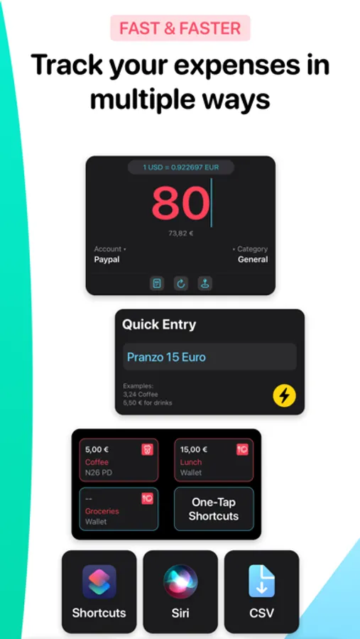 √ Siri Conversational Shortcuts - Ask Siri to add transactions quickly or about your financials