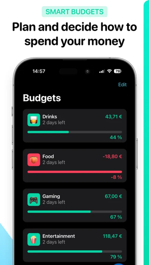 Want it all? Get MoneyCoach Premium and unlock the full power of financial mindfulness from the beginning, including Individual Smart Budgets which will save you potentially up to $2.000 every year.