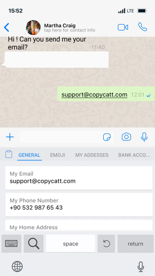 The most striking detail of Copycatt is that it is very easy to use. After logging into the app, you save the information you want. Then, when you open any other product that uses a keyboard, you can see this information in your keyboard. You can reach any of the information you choose in seconds.