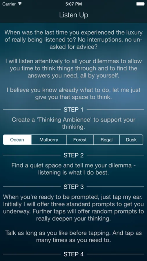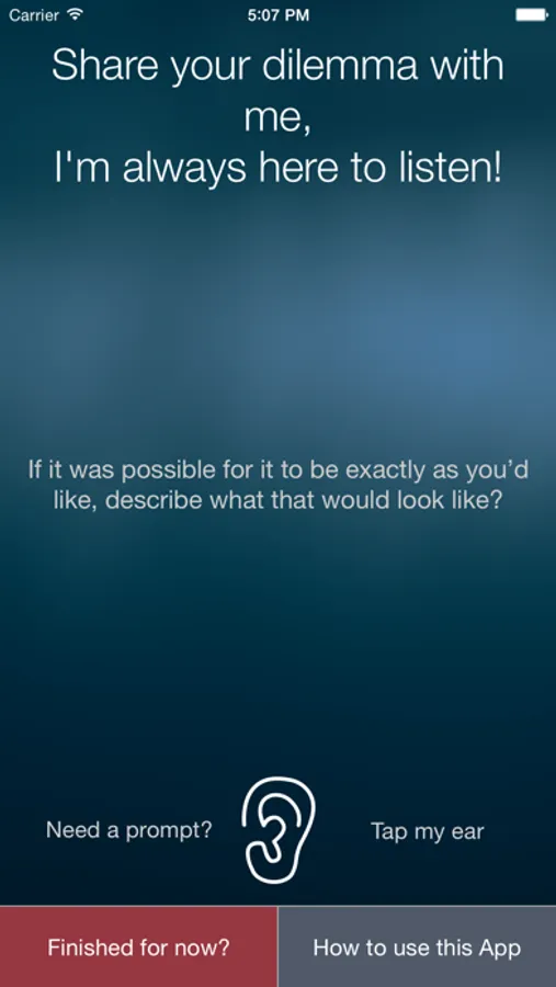 STEP 4: When you feel you’ve finished your thinking, just tap 'Finished for now' and I’ll look forward to being your listening partner again very soon.