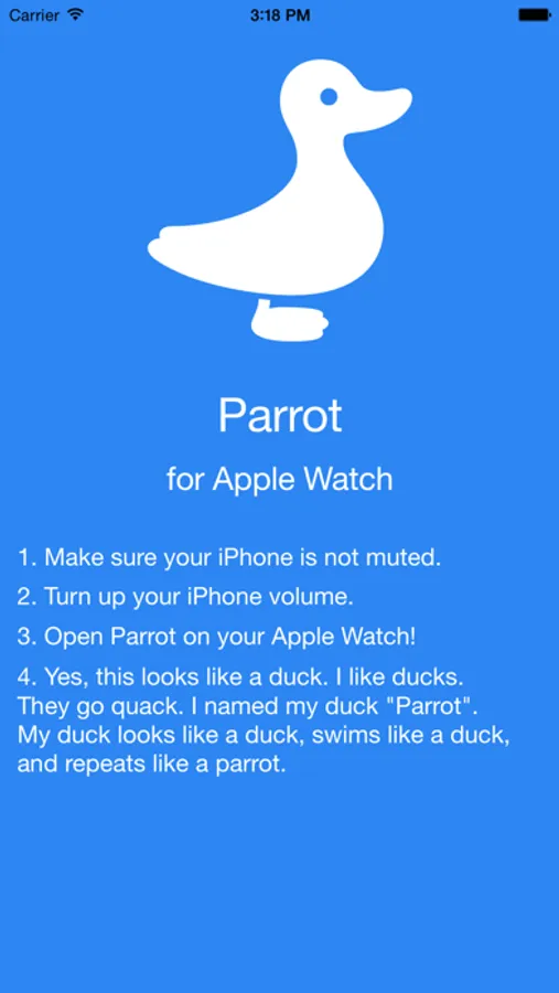 NOTE: Parrot speaks remotely on your iPhone speaker. Make sure your iPhone is not muted and the volume is turned up.