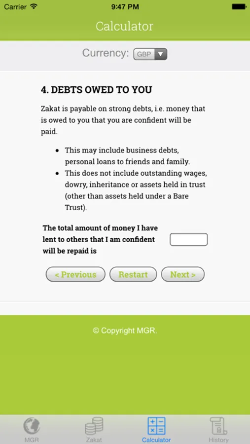 Do you want to calculate your Zakat payable in 5 easy steps provides a very accurate cost of your zakat. Our easy step by step instructions calculates your Zakat using different units of weight as well as in major currencies. No matter how diversified and complicated your assets and liabilities are, MGR Zakat Calculator guides you step by step to understand and handle them all in the most effective and efficient way.