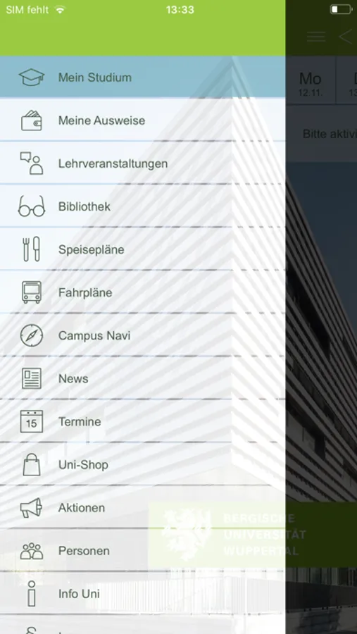 • My Studies (login area for students only): Shows the day’s events and your personal study plan. See examination results in “My Grades” and get information about changes to your WUSEL account directly through Push.