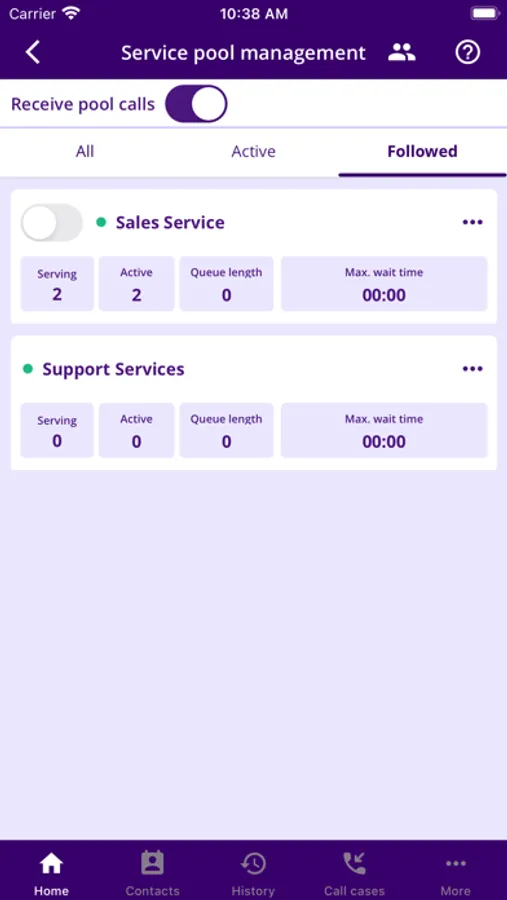 Service pools - Join, follow and manage service pools. Add more agents when the lines are busy or monitor the status of service pools. You can also set notifications to let you know when a service pool needs attention.