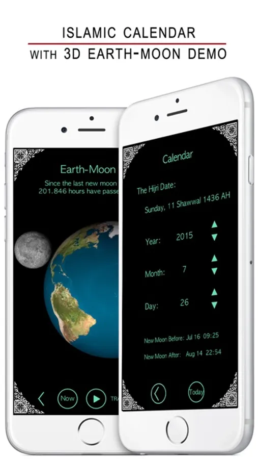 • 3D Earth-Moon gives you clear picture of what their relative positions are. You can also make the earth transparent to observe the moon phases easily.