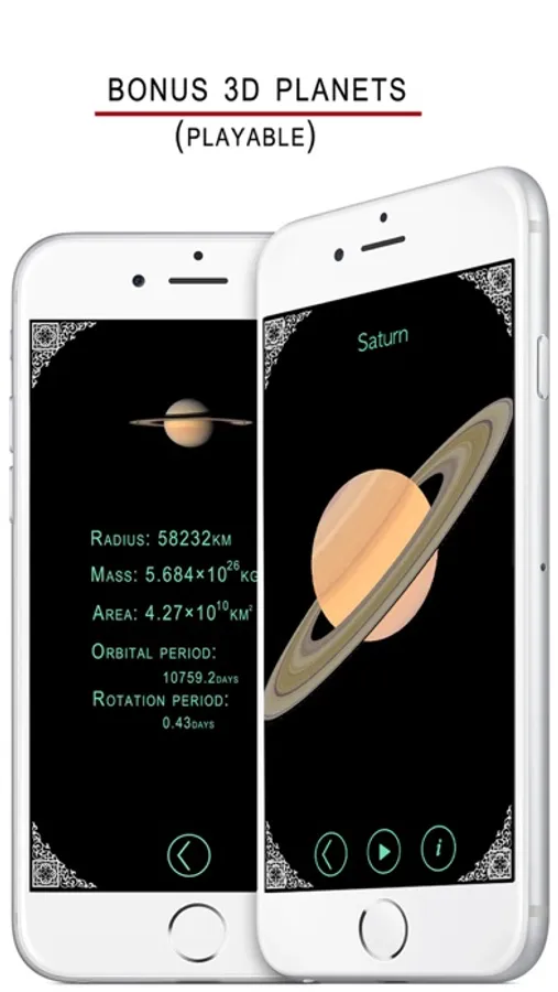 • 3D Planets are three dimensional planets in the solar system. It contains statistics of the plants, such as radius, mass, surface area, surface temperature, orbital period, rotation period and so on. Because they are three dimensional objects, you are free to play with them on your fingertips with zooming in/out, rotating the object.