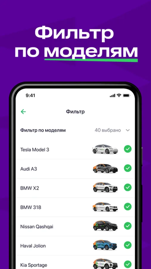 Есть и эконом, и комфорт, и премиум. Даже Tesla! Доступ к авто — без ключей, через удобное приложение.