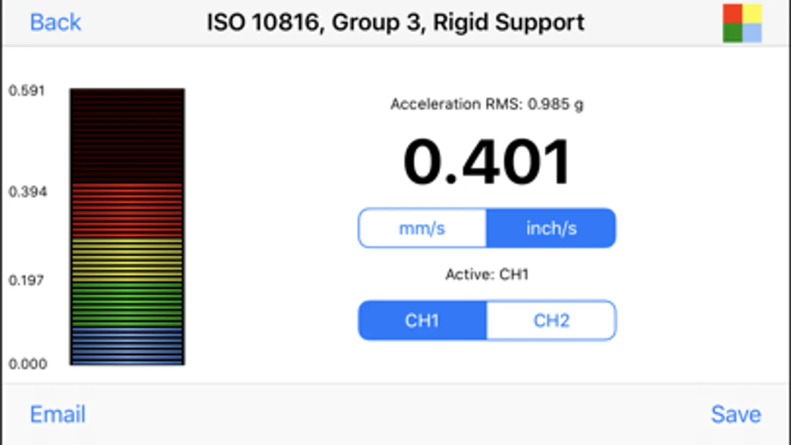 VibraTestPro is a vibration analysis tool on iPhone/iPad. It reads vibration signal from Motionics single channel accelerometer. VibraTestPro features ISO10816 based vibration meter, FFT spectrum viewer, vibration signal recorder and route base vibration data manager.