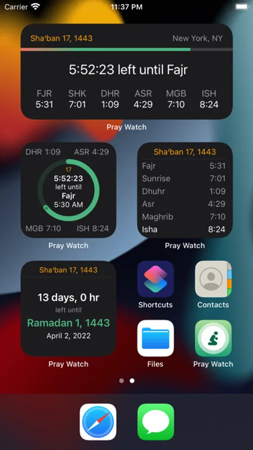 Pray Watch is a simple, privacy-focused app that displays the Islamic prayer times in an elegant, modern interface. Known for its unique green “prayer ring” and other design elements; inspired by Apple’s own native apps.