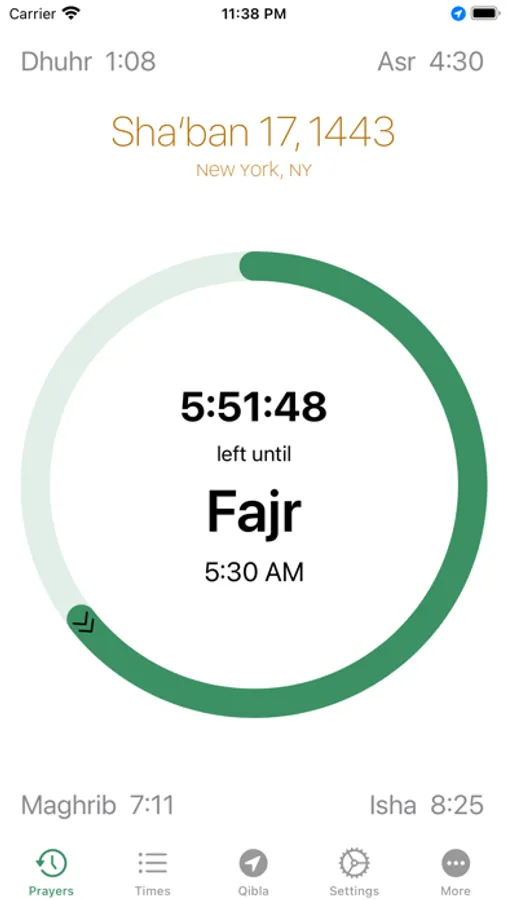- Set your masjid iqama times to be reminded to join congregational prayers