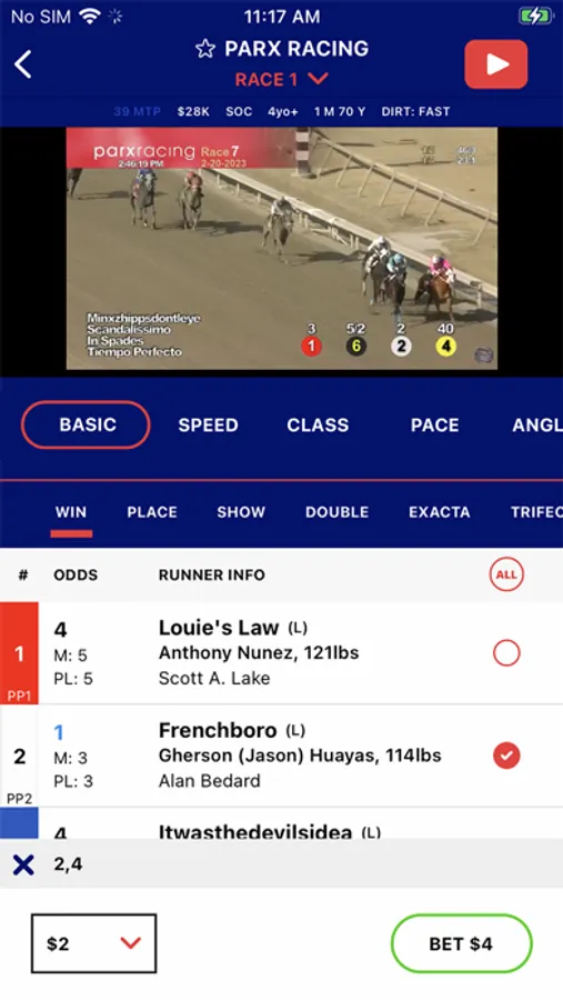 • Real time racing information including odds, will-pays, program changes, track conditions and race results