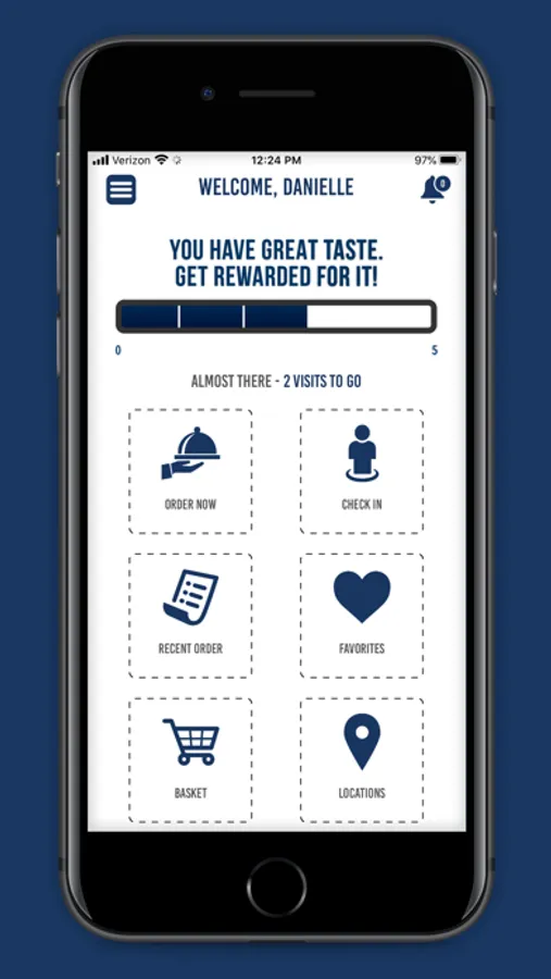 - Earn points towards rewards on each visit and online order