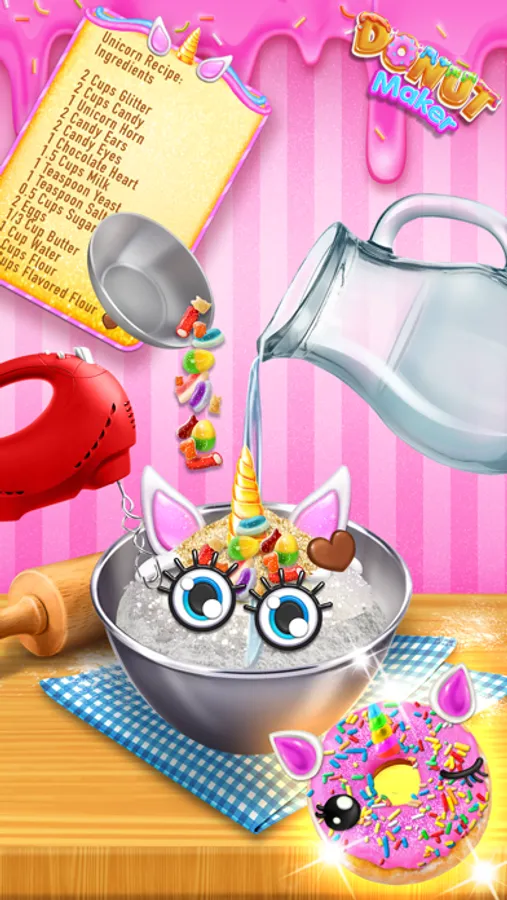 Mix and Bake flavored Donuts from Rainbow to Confetti! Make Unicorn, Snowman and Smores Donuts following Recipe Cards!