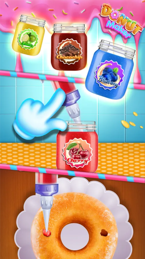 Realistic Cooking Steps! Select Flavor, Mix Ingredients, Refrigerate, Roll Dough, Fry Donuts, Fill with Jelly, Select Glaze and Decorate! Be a Baker Chef!