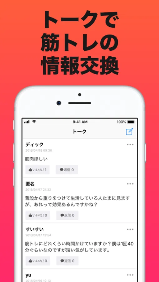 ・筋トレ情報を交換することができます。トレーニー同士の交流にご活用ください。