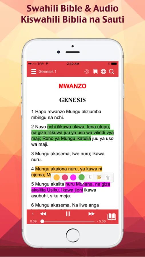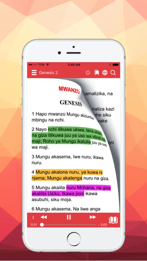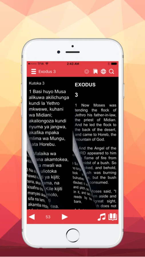 1. Easily select from two different languages Swahili and English instantly.