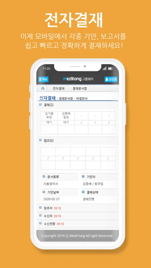 - 업무에 필요한 결재서류를 온라인으로 제공하는 전자문서 결재