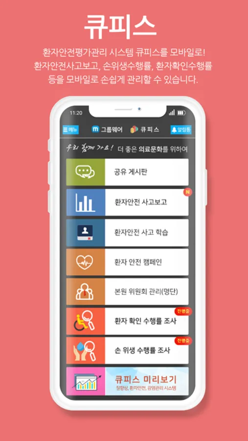 1. 병원 임직원들이 업무를 효과적으로 하기위한 그룹웨어 모바일버전 플렛폼