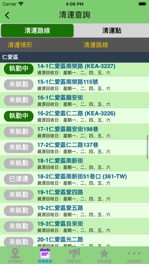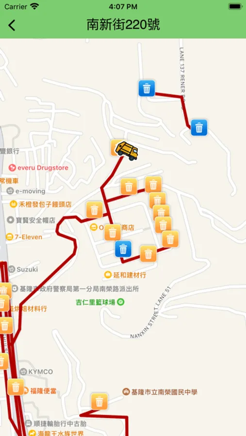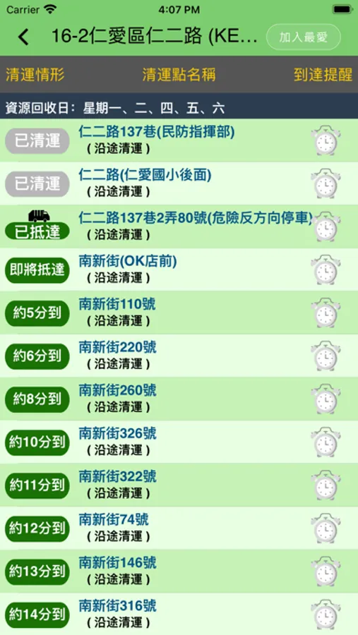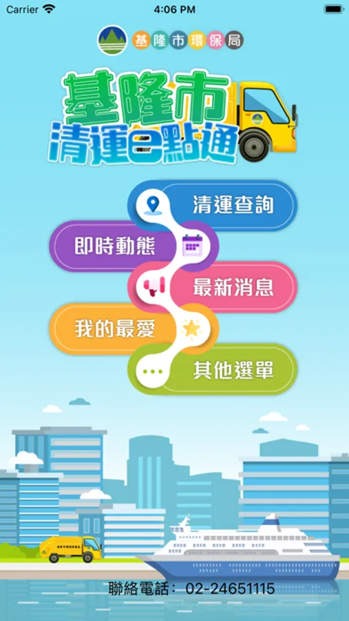 1. 提供基隆市垃圾車即時位置及預計抵達時間查詢,並可將常用清運點加到我的最愛,於垃圾車抵達前自動提醒