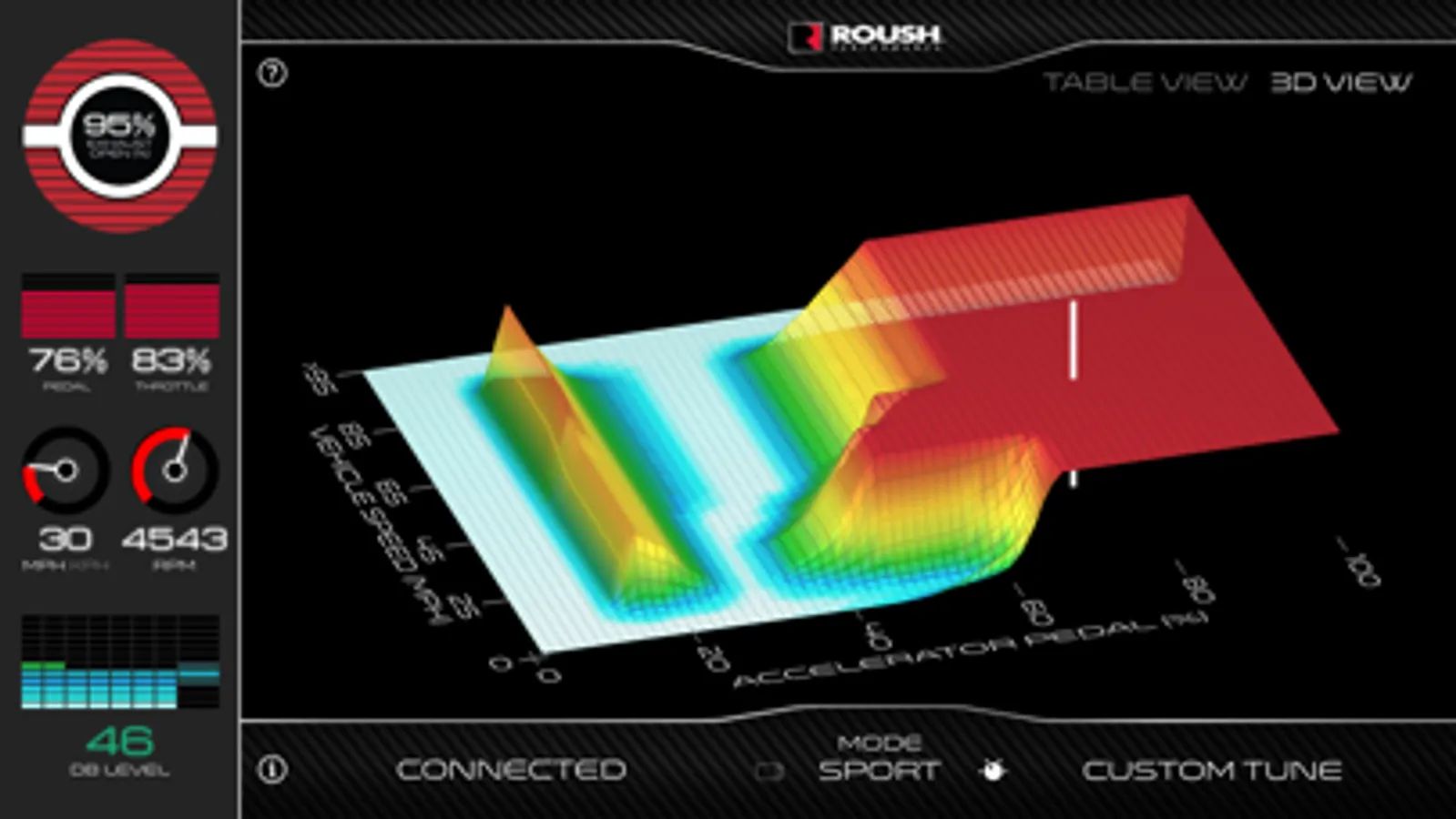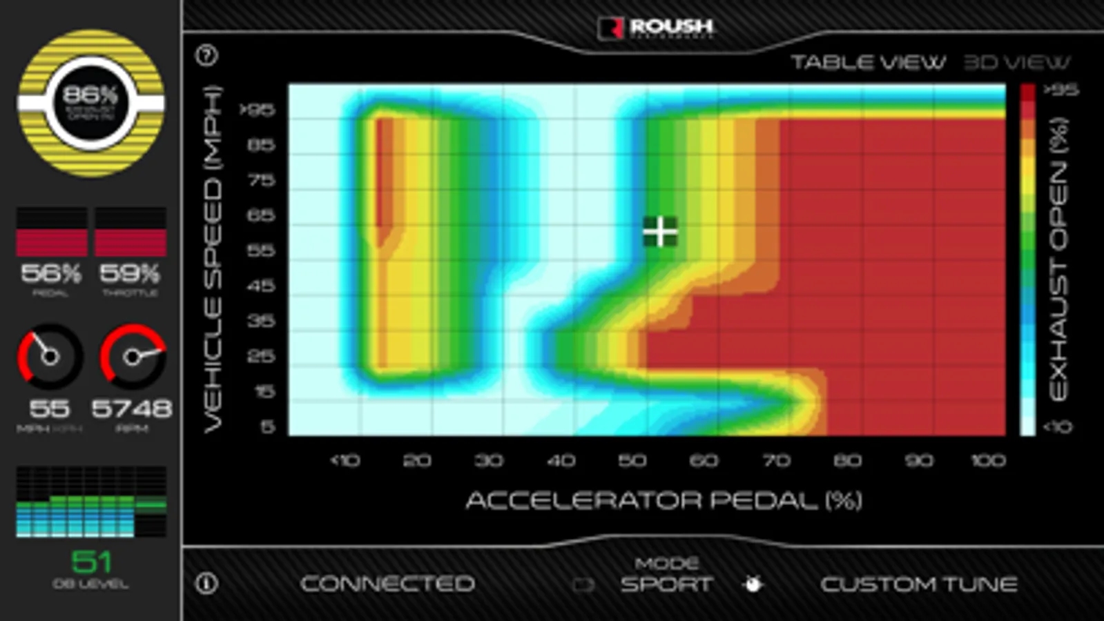 The patent pending Roush Active Exhaust flow control system is unique in the industry and allows the owner of the vehicle to “tune” their exhaust note for their driving conditions and preferences. The Active Exhaust App for iOS gives you the ability to both monitor the Active Exhaust system inside the vehicle while it's operating and design your own custom strategies for deciding how your vehicle sounds. Whether it's on the track or driving through town, you're in control!