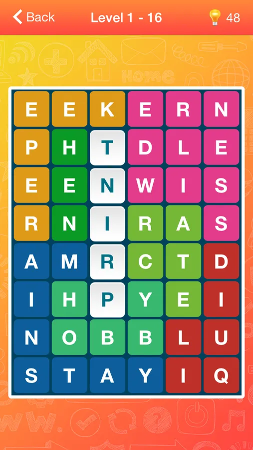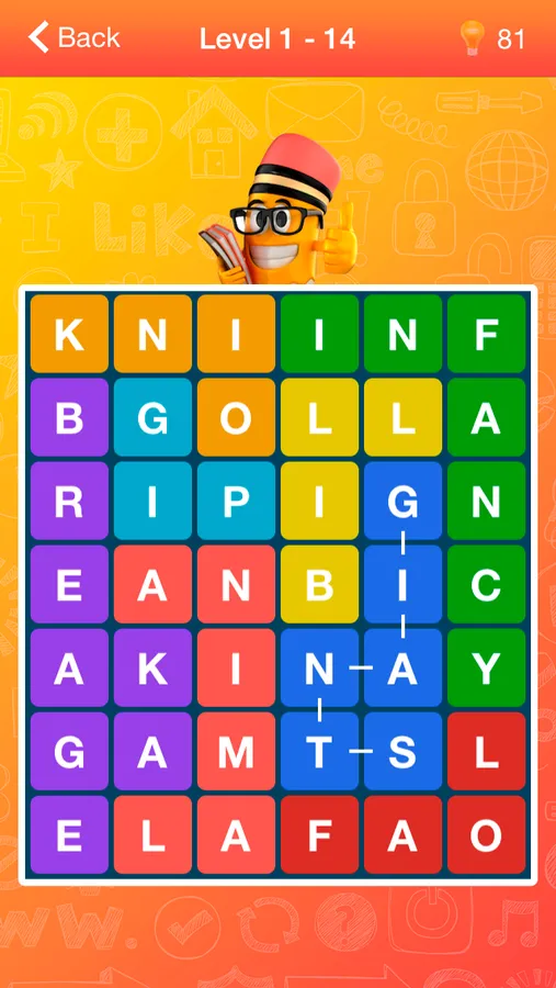 The game goal is easy: you need to find the words in the square field consisting of letters. To complete this level you need to use all the letters and uncover the entire field through.