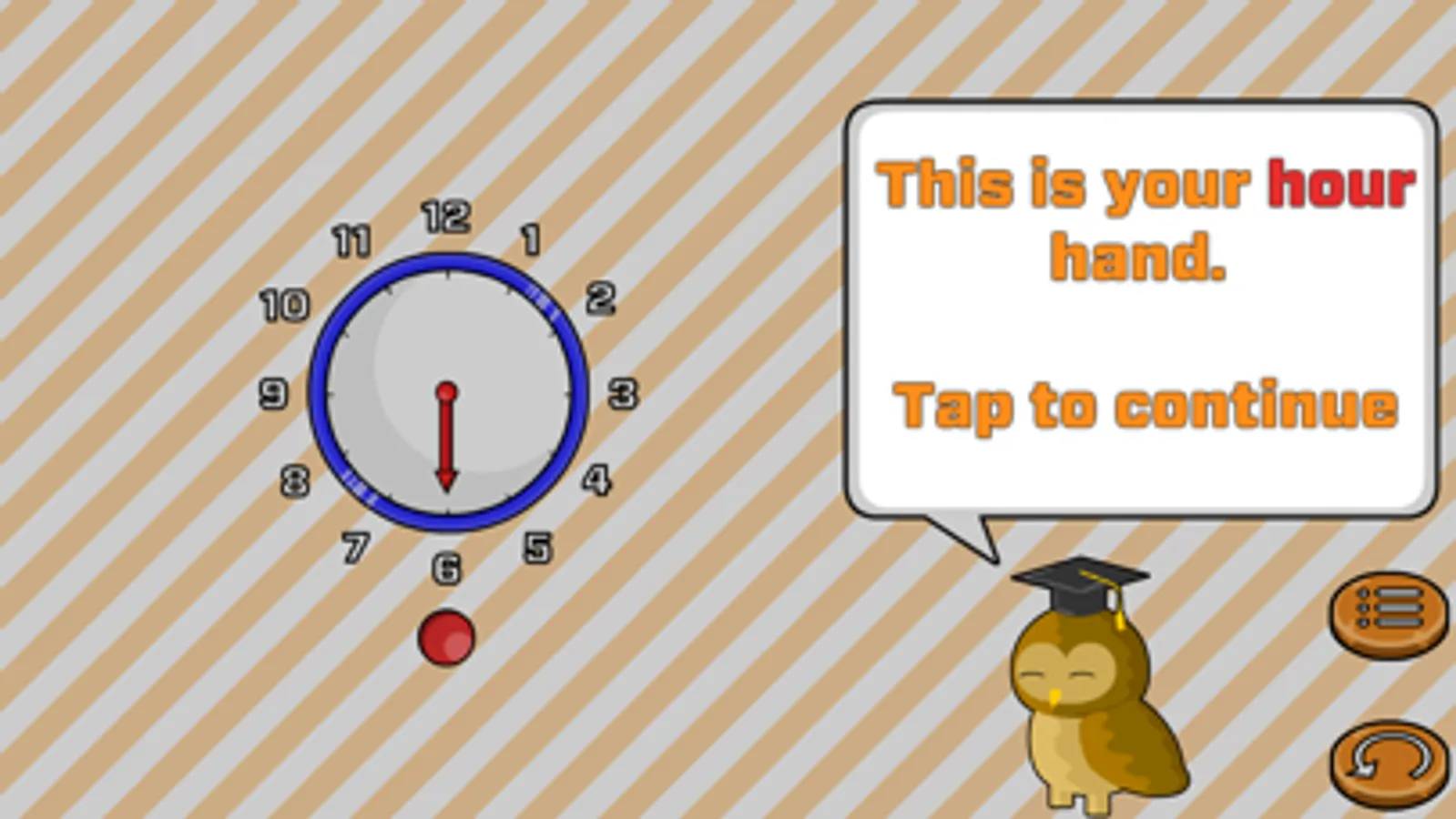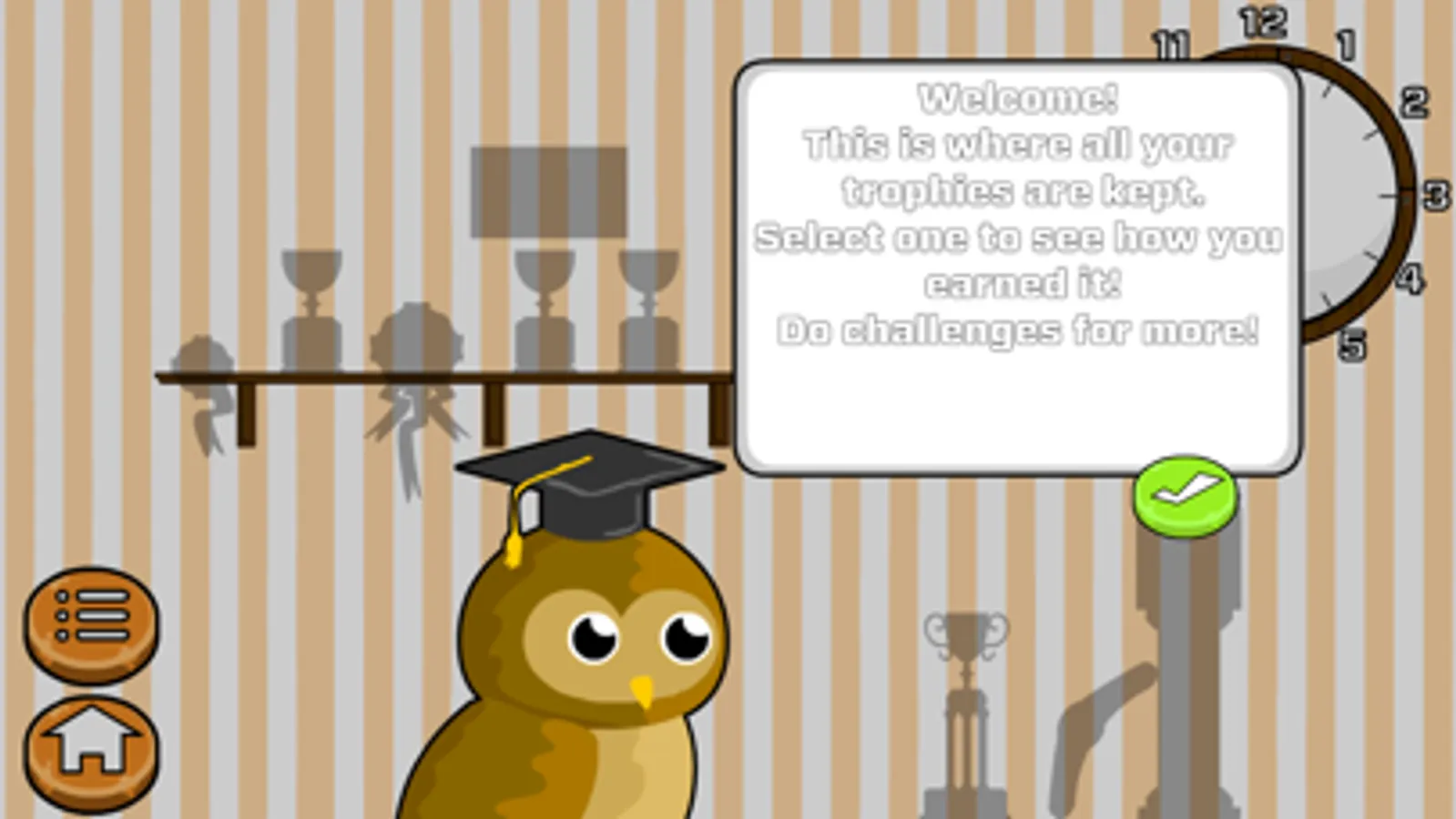 Owl Teach You Time is an education game about analog time, Aided by a wise old owl you gradually learn how to use and understand analog clocks. The game carries the player from the very simple to the more complex workings of analog time, meaning the player can begin with little to no understanding and finish with confidence, learning at their own pace in a positive, relaxed and fun environment!
