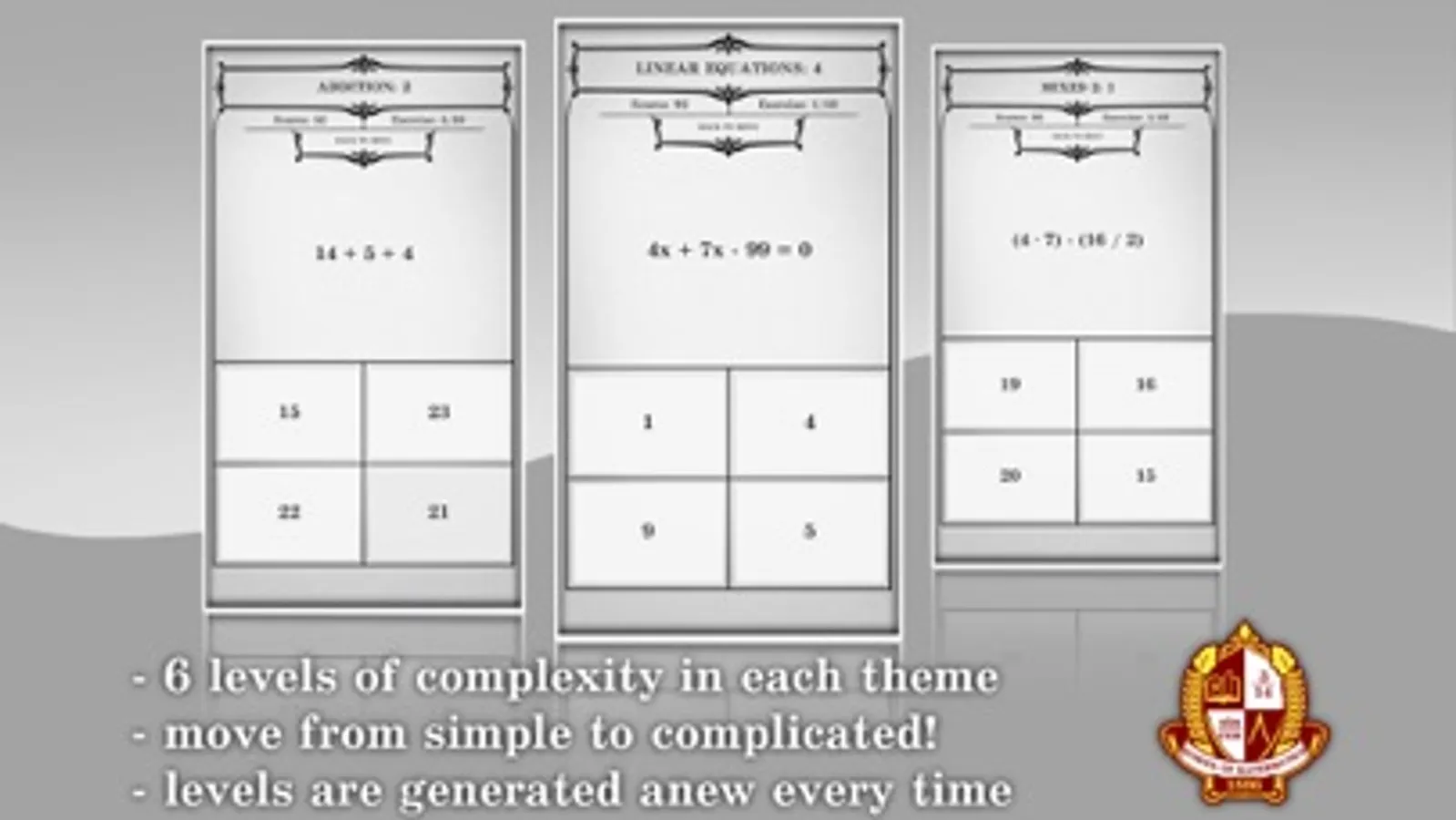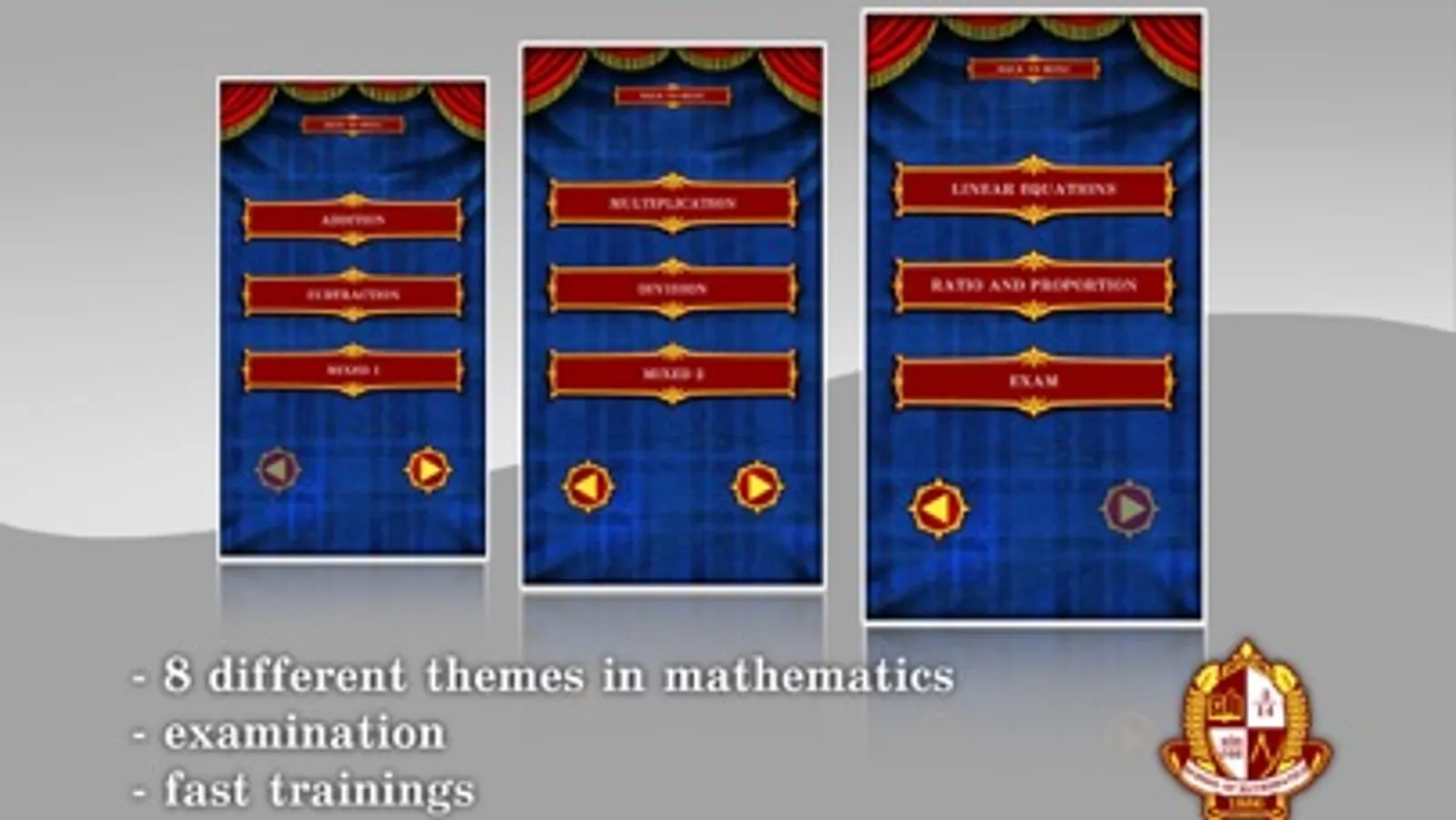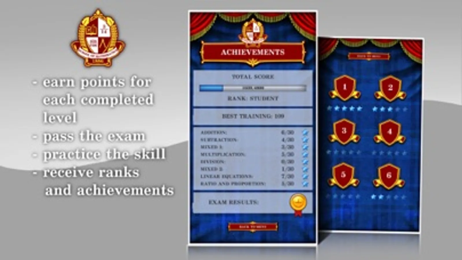 Apart from the main progress, the game gives you the opportunity to train in the mode "Fast training". In this mode, you will be answer to random questions from all topics in mathematics. Practise, improve their mental abilities, sharpen the intellect!