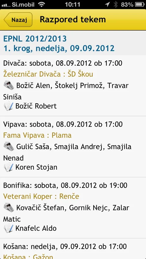 • razporedi tekem in rezultati ligaških in pokalnih tekmovanj;