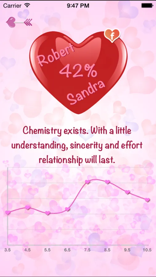 Love Calculator enables measurement of the compatibility of two people in love.