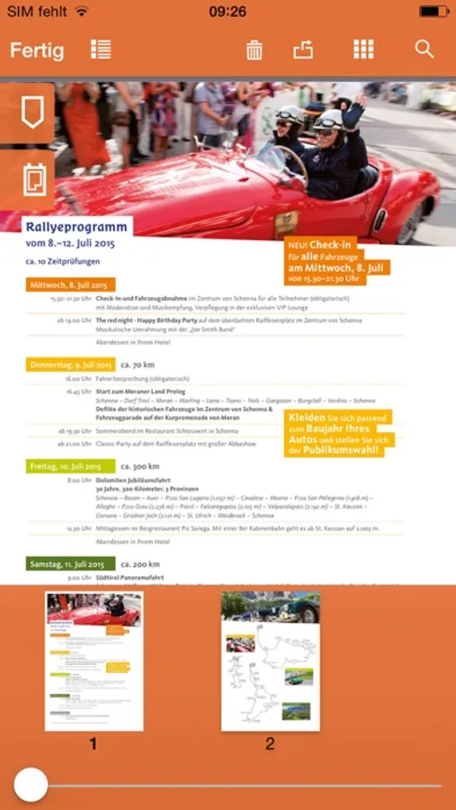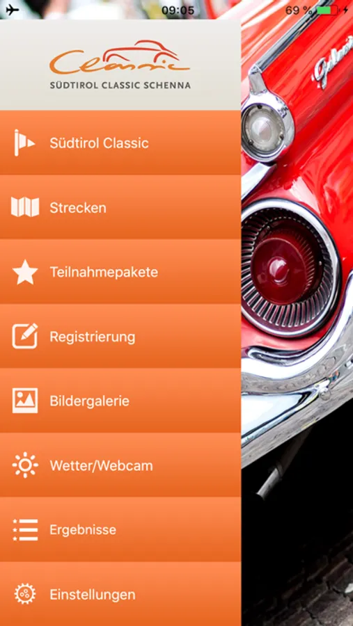 Die SüdtirolClassic-App ist der optimale Begleiter für die Teilnahme an der SüdtirolClassic-Rallye, Infos über Strecken, Teilnahmebedingungen, Wetter-Infos, Infos zum Rahmenprogramm.