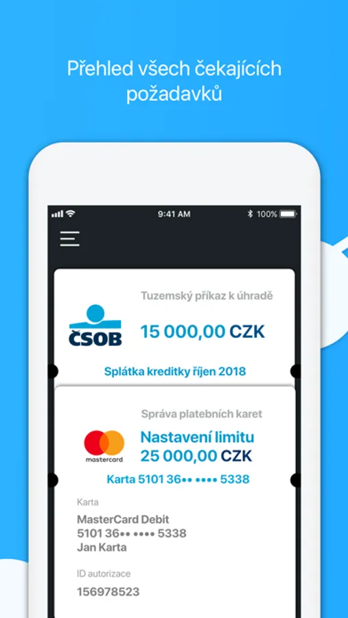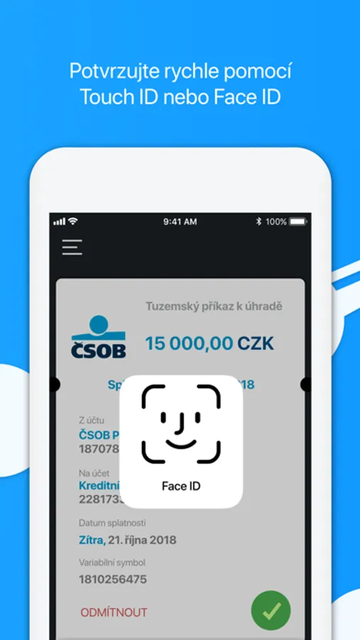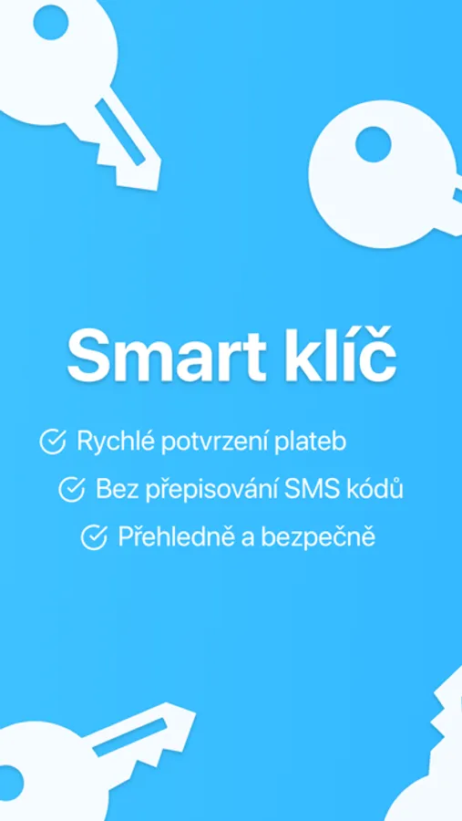 The ČSOB Smart Key will make it easier for you to log in and confirm payments in internet banking, as well as card payments in e-shops, or remote verification when calling the Infoline or a bank branch. You don't have to wait for a confirmation SMS and then rewrite the code from it. With the Smart Key, notifications will pop up immediately and you will confirm the request with a Face ID, fingerprint, or numerical PIN.