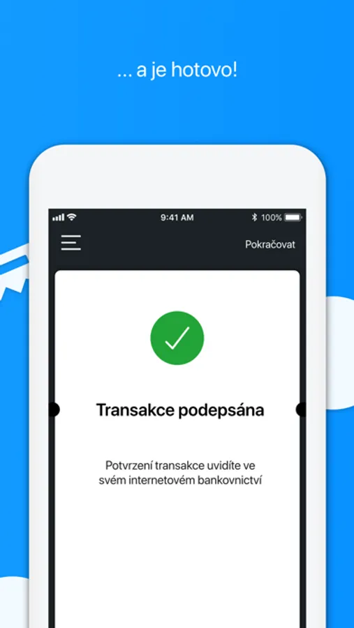 • Being offline is not a problem: app works also offline for confirming transactions in internet banking