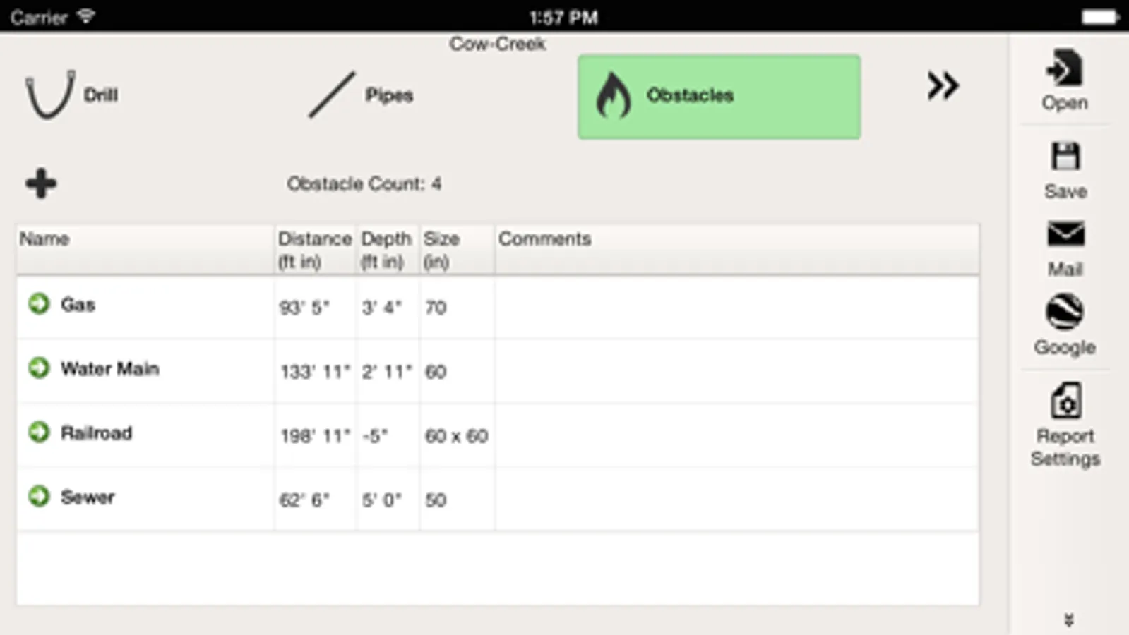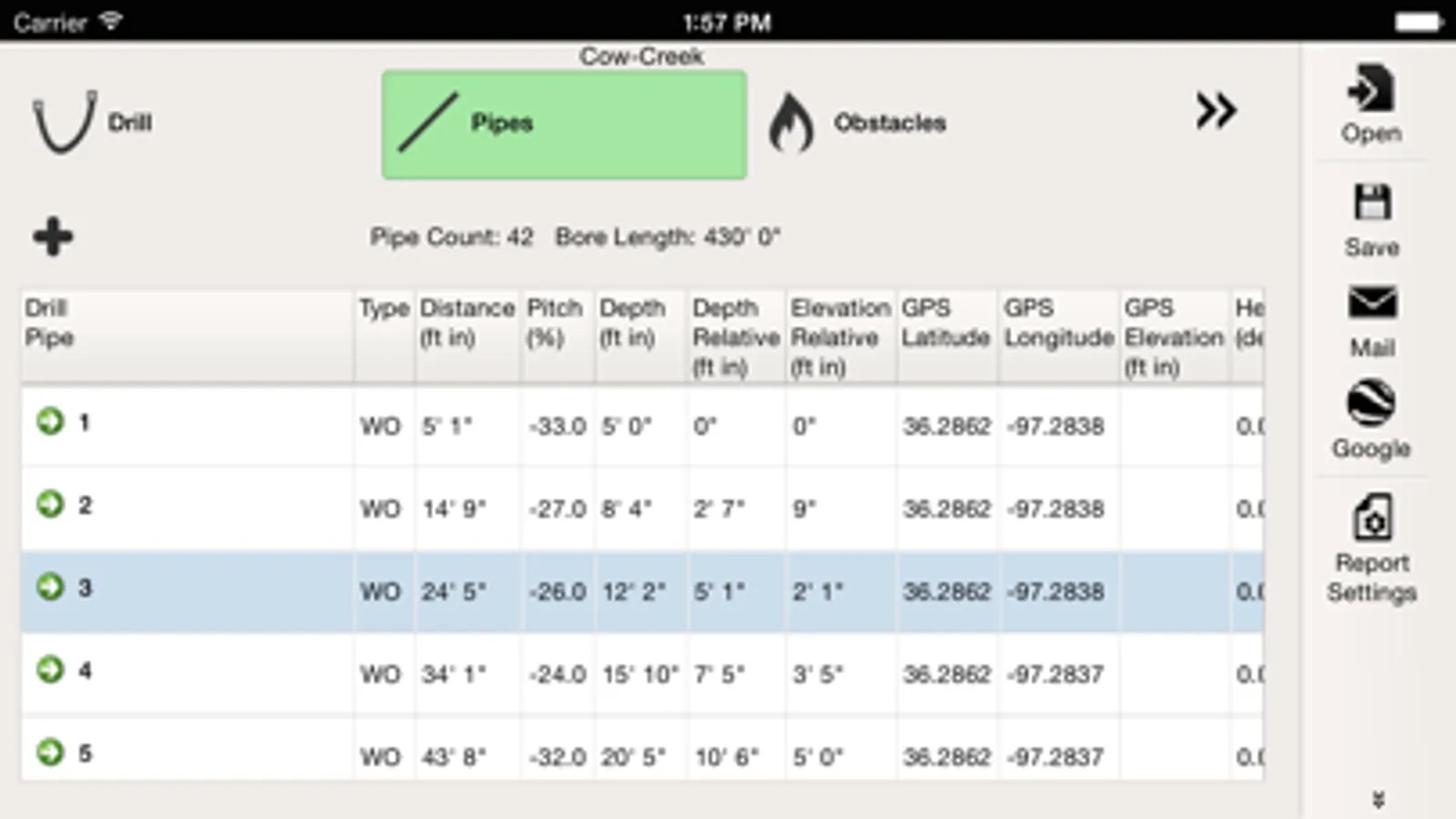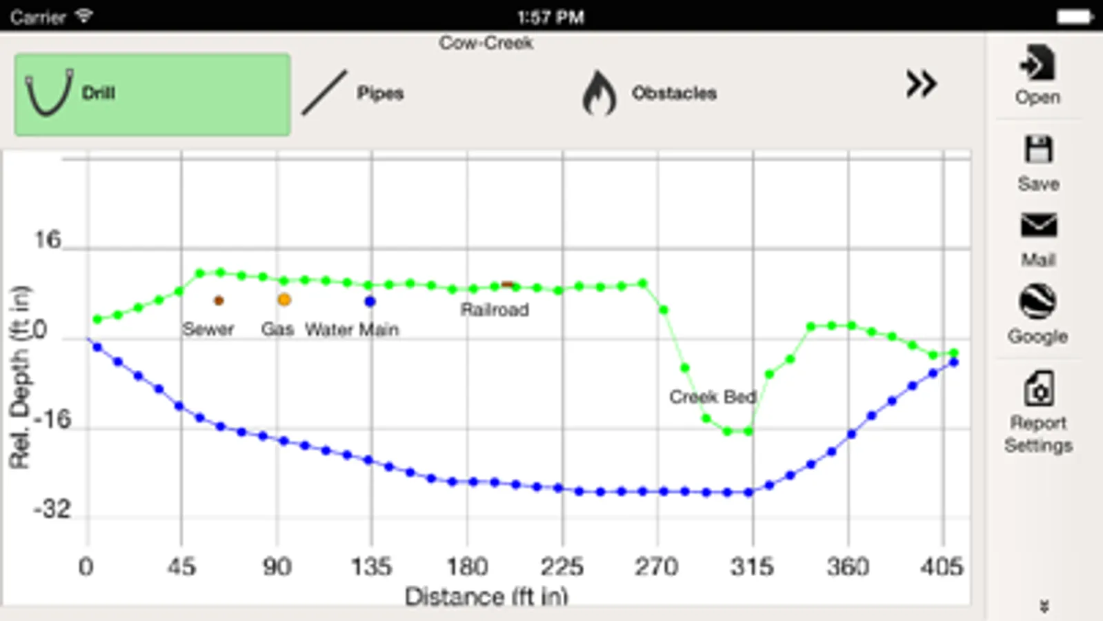 - Open the KML file to view your drill path on satellite imagery apps while on the job site.